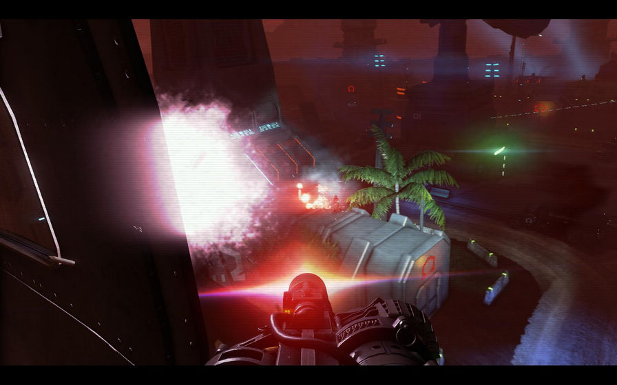 本作设定在80年代(被描述为未来的VHS幻境),玩家将上演英雄救美的好戏,顺带杀坏人拯救世界。2007年,你扮演的是Sargent Rex Colt,一个靠机械装置维持生命的Mark IV Cyber突击队员。你将体验VHS时代核未来的每一个细节,靠机械维持生命、血龙、突变体以及Michael Biehn(终结者,外星人、美国海军海豹突击队)的冲击。